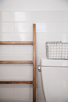 Como trocar a banheira por um duche já é uma remodelação que necessita de algum investimento, damos-lhe agora uma dica para que a sua casa de banho fique com um toque bem diferente e sem gastar quase dinheiro nenhum. Um detalhe que está muito em voga nos dias de hoje são as escadas de madeira na casa de banho a servirem de toalheiro ou de suporte para cestos ou vasos. É um detalhe que fará sem dúvida a diferença! Para as pessoas que adoram pequenos trabalhos de DIY podem arranjar a madeira e construir elas próprias, mas também existem opções já feitas bem em conta. A escada e pequenos acessórios poderão custar-lhe menos de 60 €.
