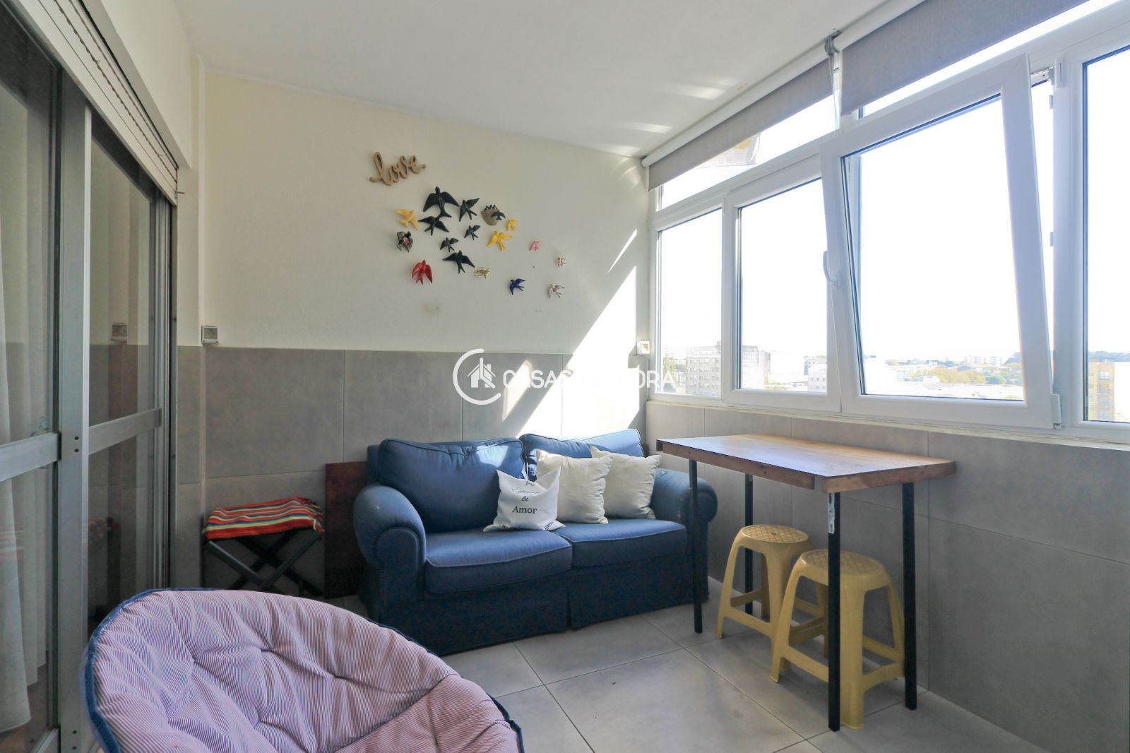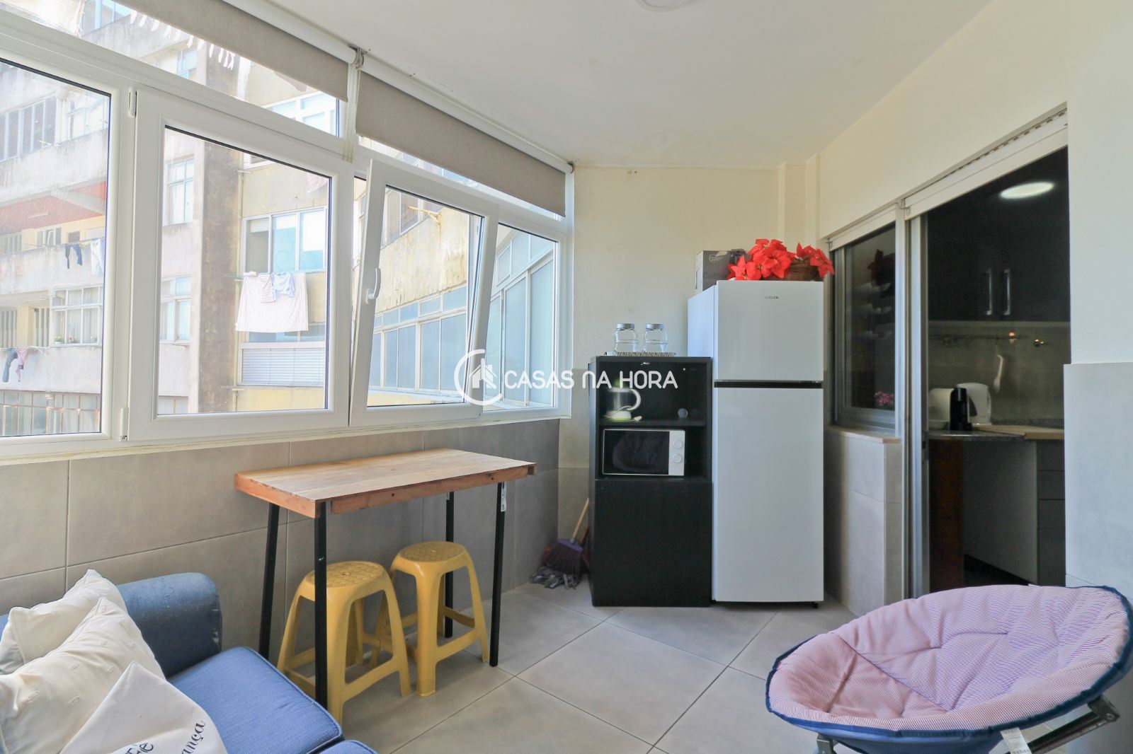 -varanda marquisada fechada com espaço separado de sala de estar ou escritório;