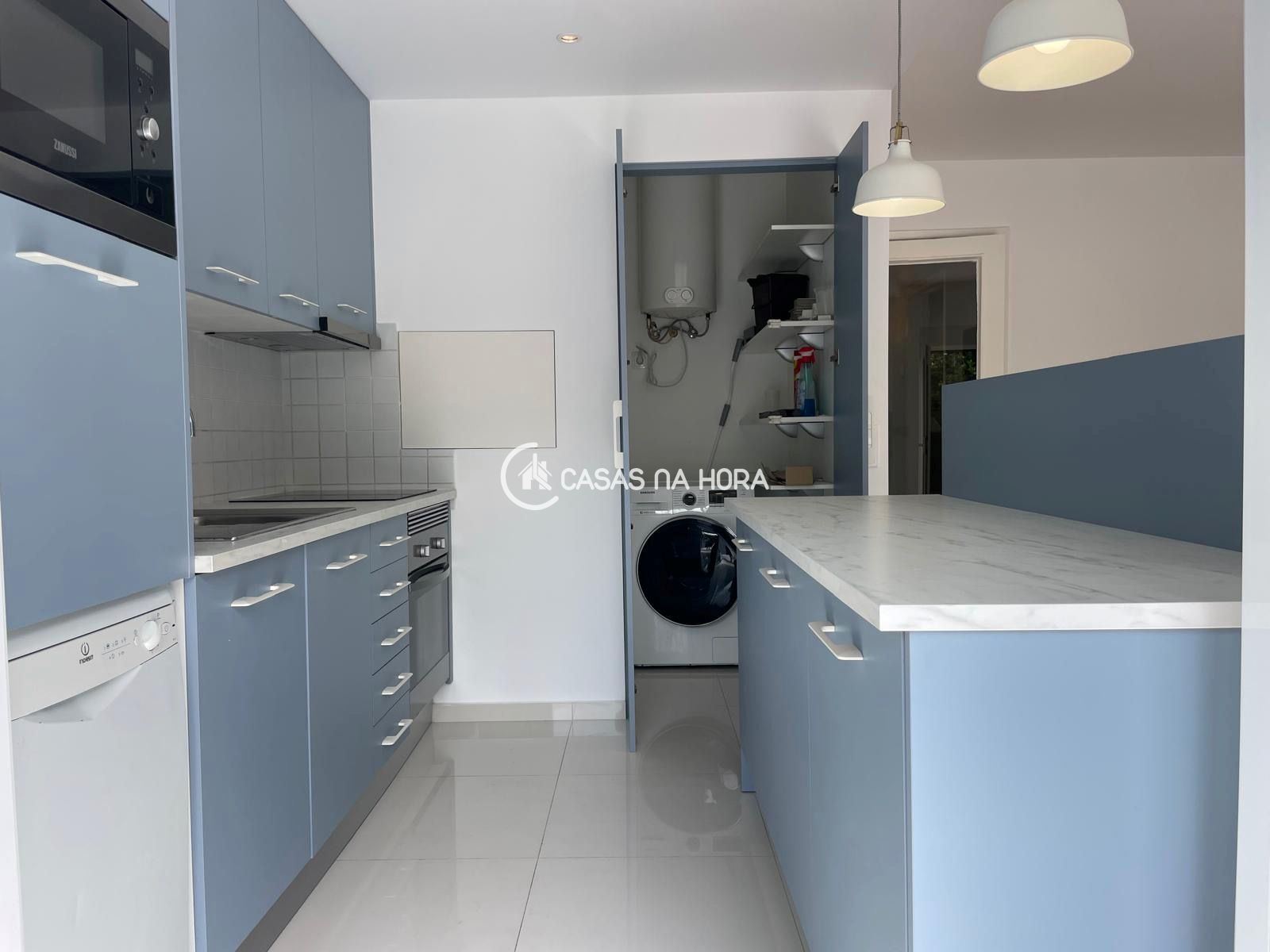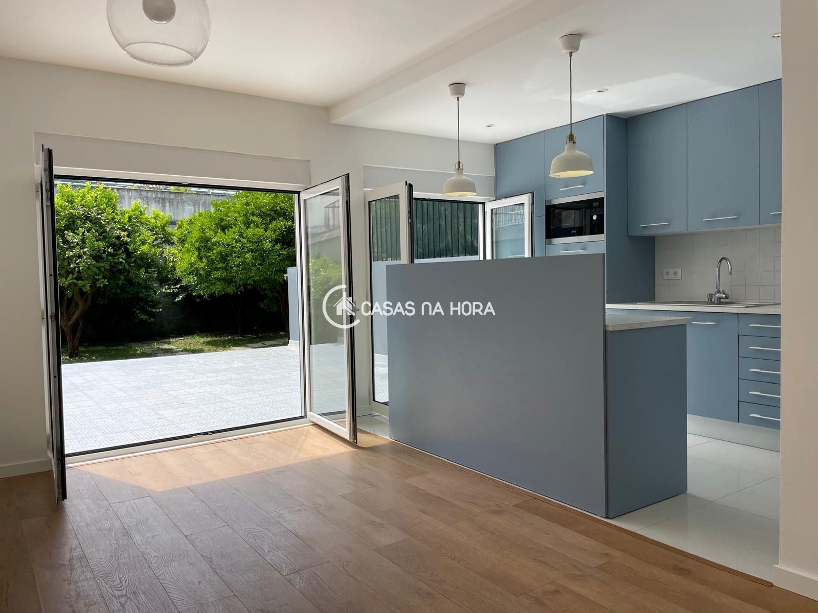 Em pleno centro de Algés, junto ao Palácio dos Anjos, este rés de chão acabou de ser remodelado e encontra-se como novo. Optou-se por valorizar o espaço exterior, de dimensões pouco usais e com arvores de frutos, ao abrir a sala em open space com a cozinha, criando toda uma area com imensa luminosidade.