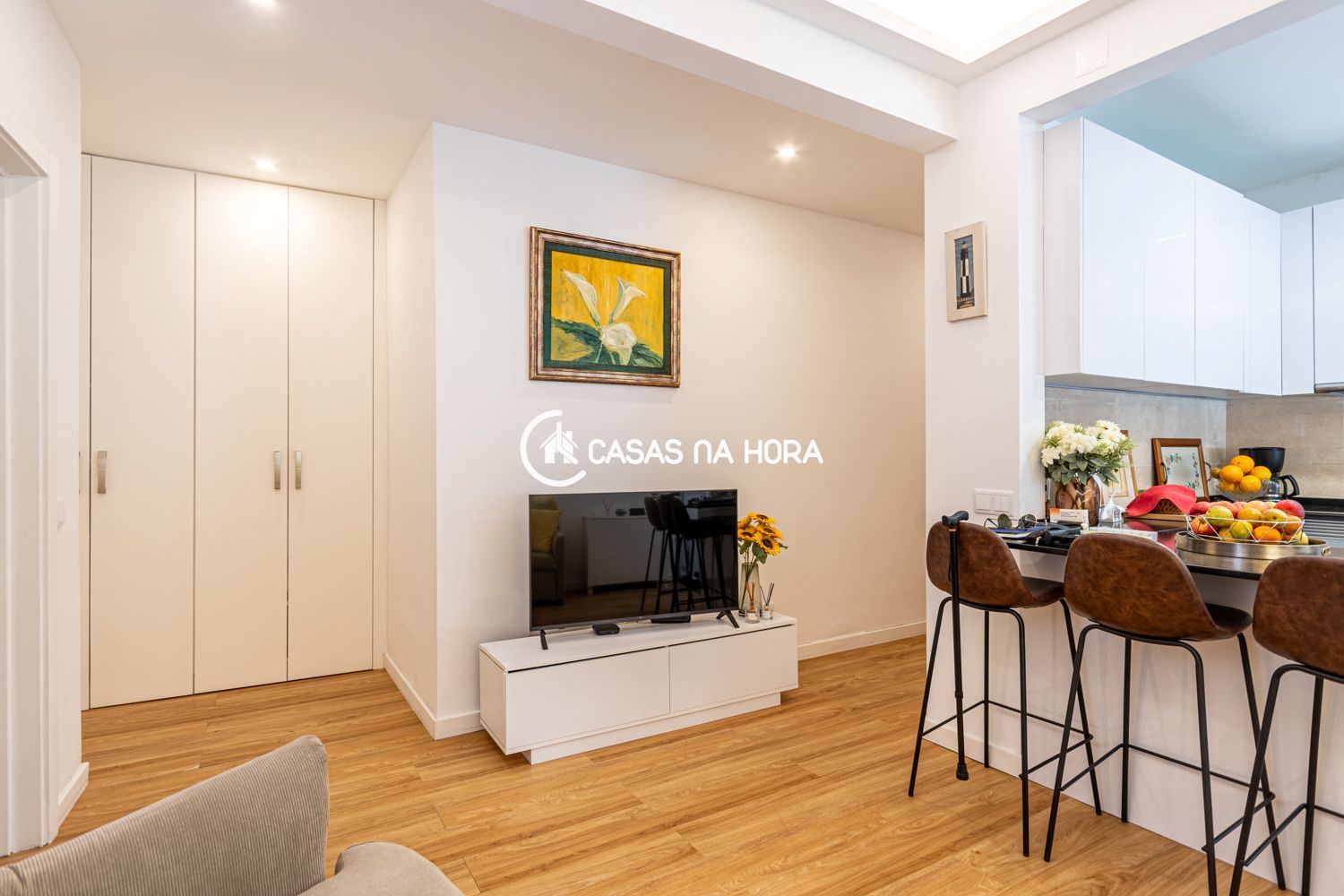 O apartamento, na sua renovação, ficou com a cozinha em open space com a sala.