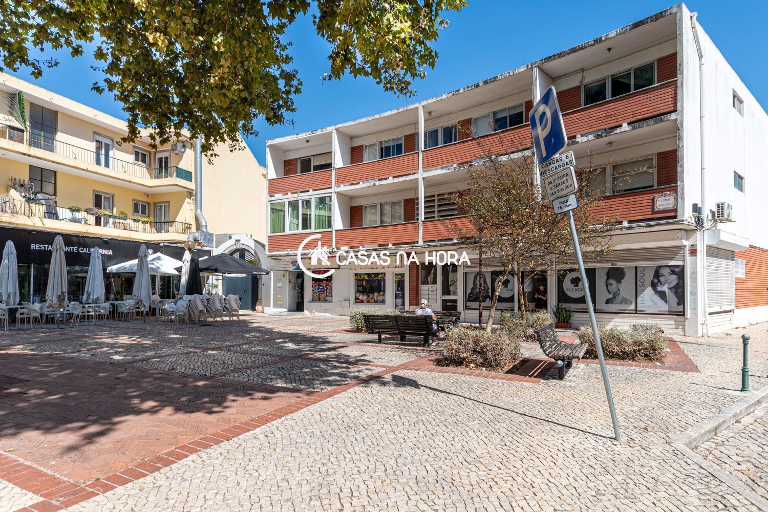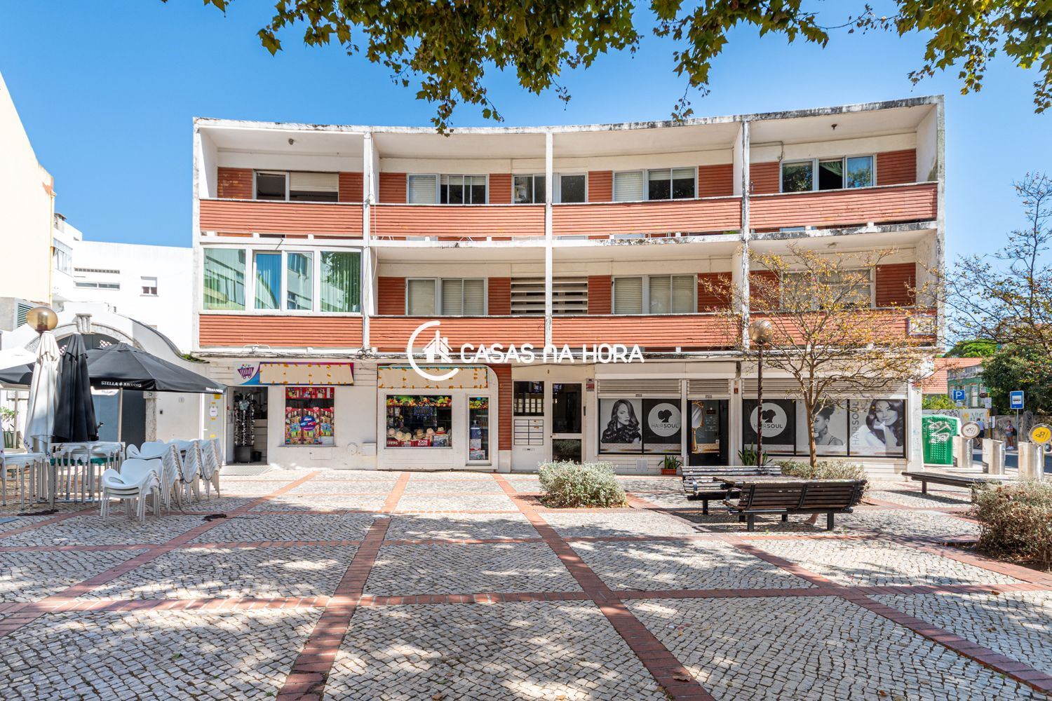 É um R/C em prédio bem mantido, com ambiente muito sossegado, embora central junto ao renovado Mercado da Parede e a 200 metros da Estação da CP.