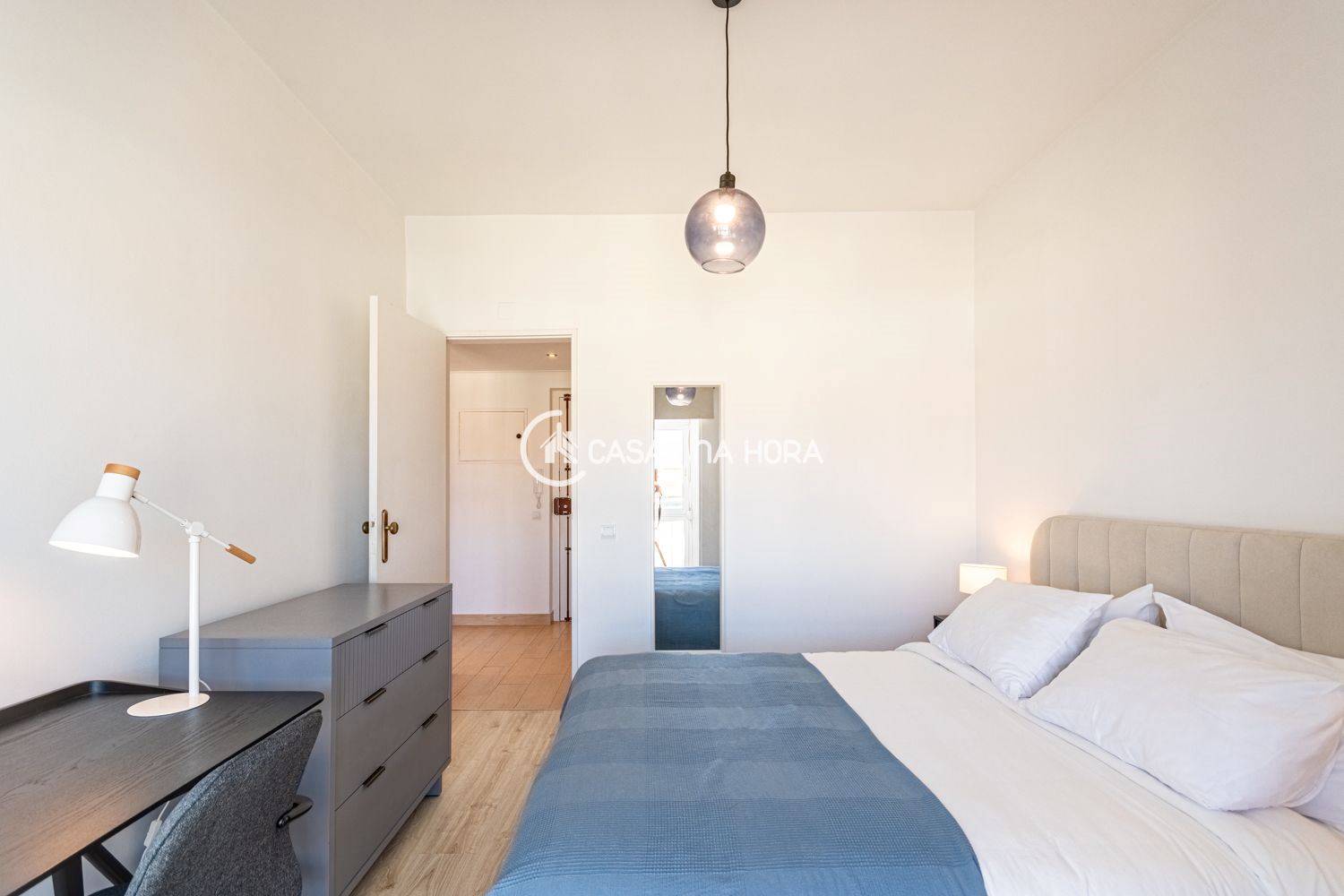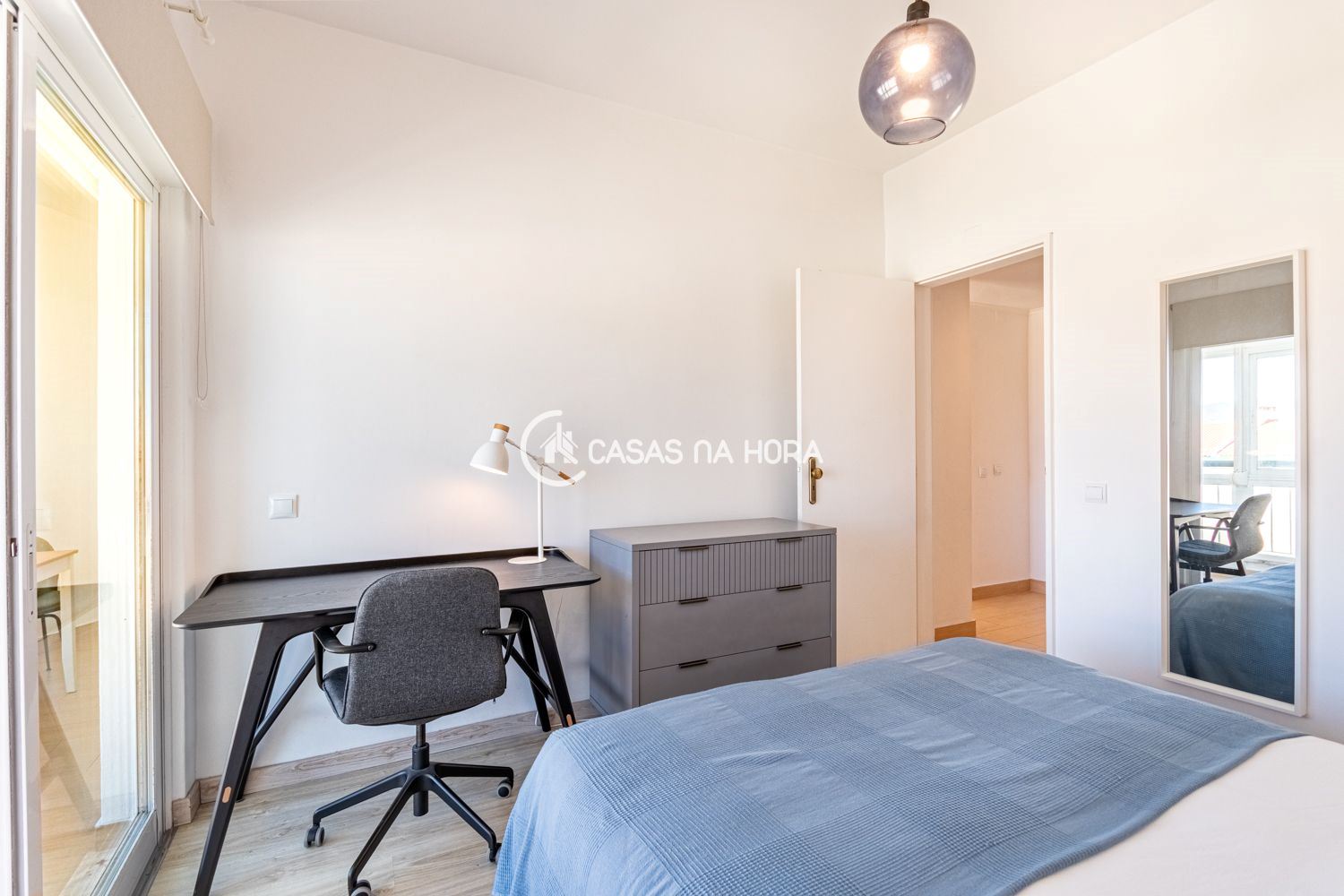Quarto com boa área, roupeiro e ligação à marquise, proporcionando maior sensação de espaço
