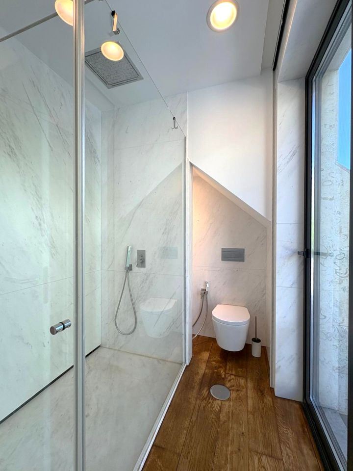 Na área privada, encontra-se uma suíte generosa com zona de vestir e acesso a um segundo terraço (16 m²), voltado para uma encosta tranquila e verde, proporcionando um ambiente mais reservado e relaxante.
