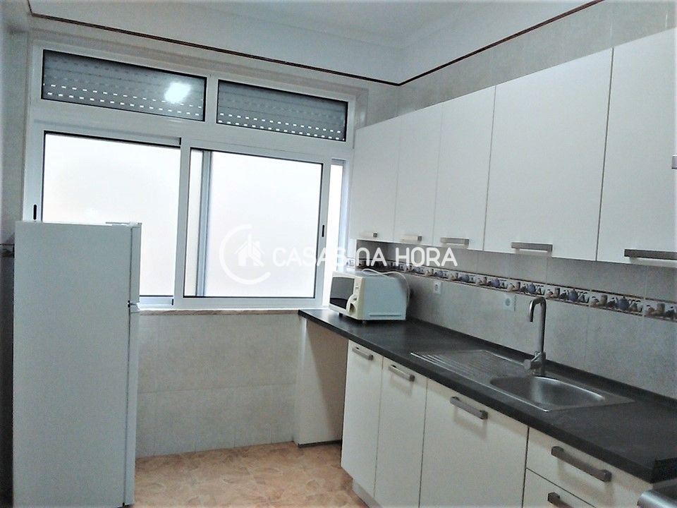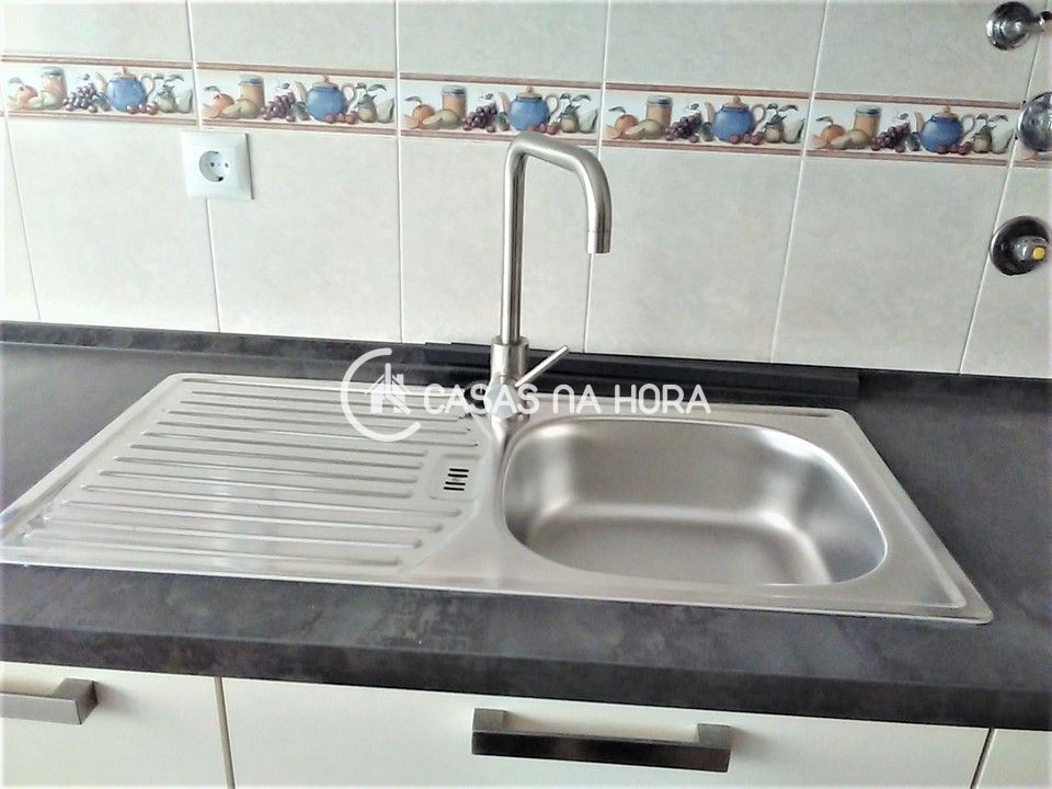 O apartamento, em bom estado, com janelas de vidro duplo, é composto por uma cozinha com uma boa área e equipada com fogão, exaustor, esquentador e frigorifico, quarto e sala. A instalação sanitária completa, renovada com base de duche. Possui gás canalizado.