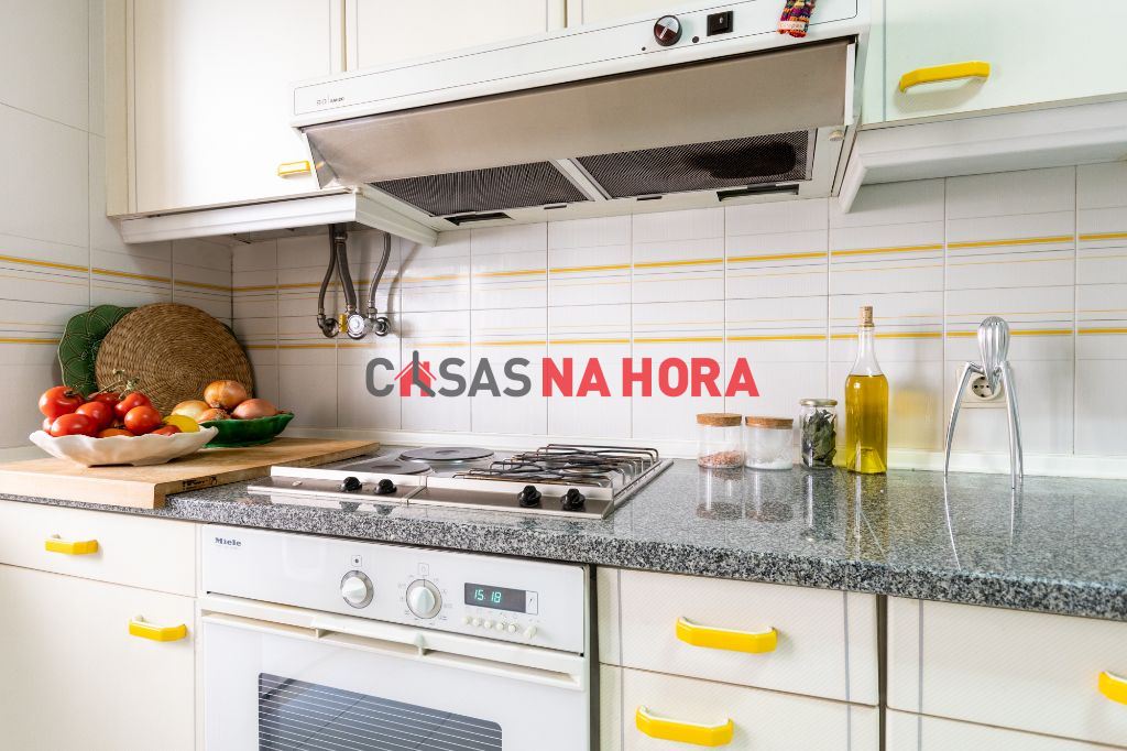 Cozinha equipada com placa, forno, esquentador, frigorífico, maquina da loiça, roupa,