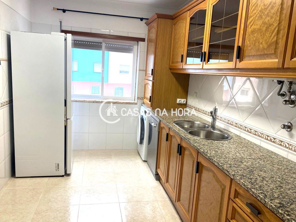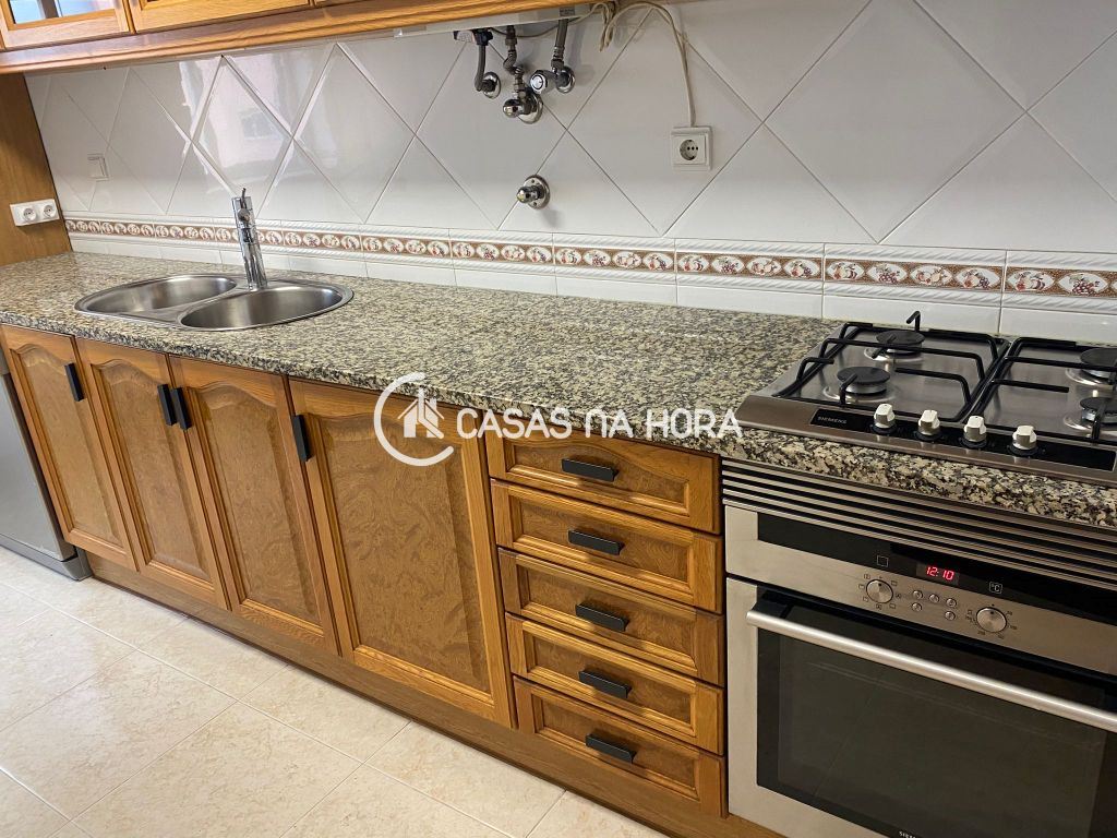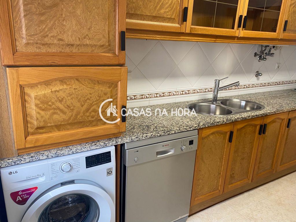 Cozinha funcional com 10,5 m² totalmente equipada com placa, forno, exaustor, máquina de lavar roupa, máquina de lavar loiça, frigorífico e esquentador.