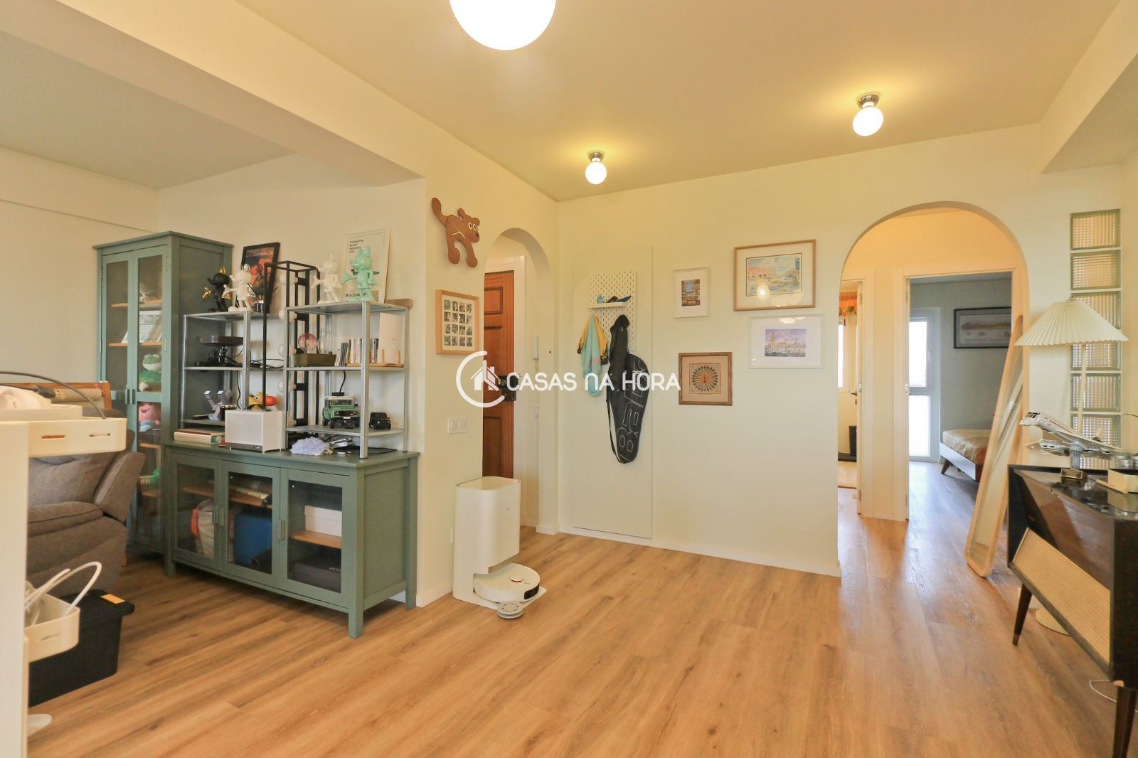 -sala ampla espaçosa com acesso a varanda marquisada com janelas de grandes dimensões que permitem vistas agradáveis de mar no horizonte;