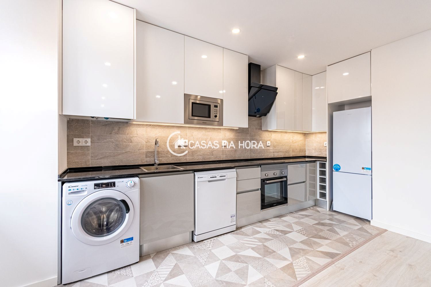 O imóvel destaca-se pela renovação completa e acabamentos modernos, combinando conforto contemporâneo com o charme característico da zona histórica. O apartamento dispõe de uma sala ampla em open space com cozinha totalmente equipada, criando um ambiente luminoso e funcional, a cozinha apresenta design moderno com eletrodomésticos integrados, excelente arrumação e uma estética clean que se integra harmoniosamente com a área social.