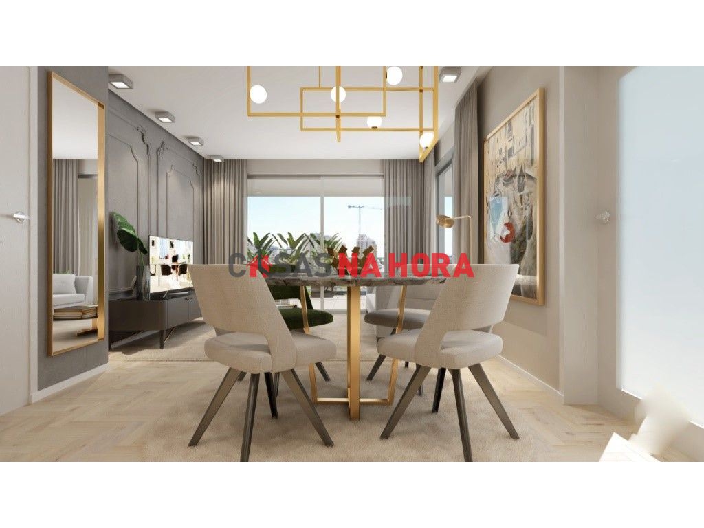 O apartamento beneficia de pré-instalação de ar condicionado na sala e nos quartos, chão radiante térmico na cozinha e casas de banho, energia solar para aquecimento de águas sanitárias, porta de entrada corta-fogo e de alta segurança e caixilharias em alumínio com vidro duplo panorâmico.