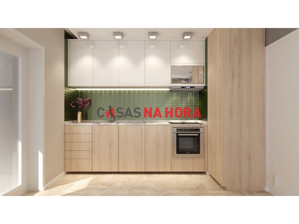 Na cozinha todos os electrodomésticos de encastrar, pronta a funcionar: forno, placa vitrocerâmica, exaustor, termoacumulador solar, micro-ondas, máquina de lavar roupa, máquina de lavar loiça e frigorifico combinado, lava-loiça de encastrar em inox.