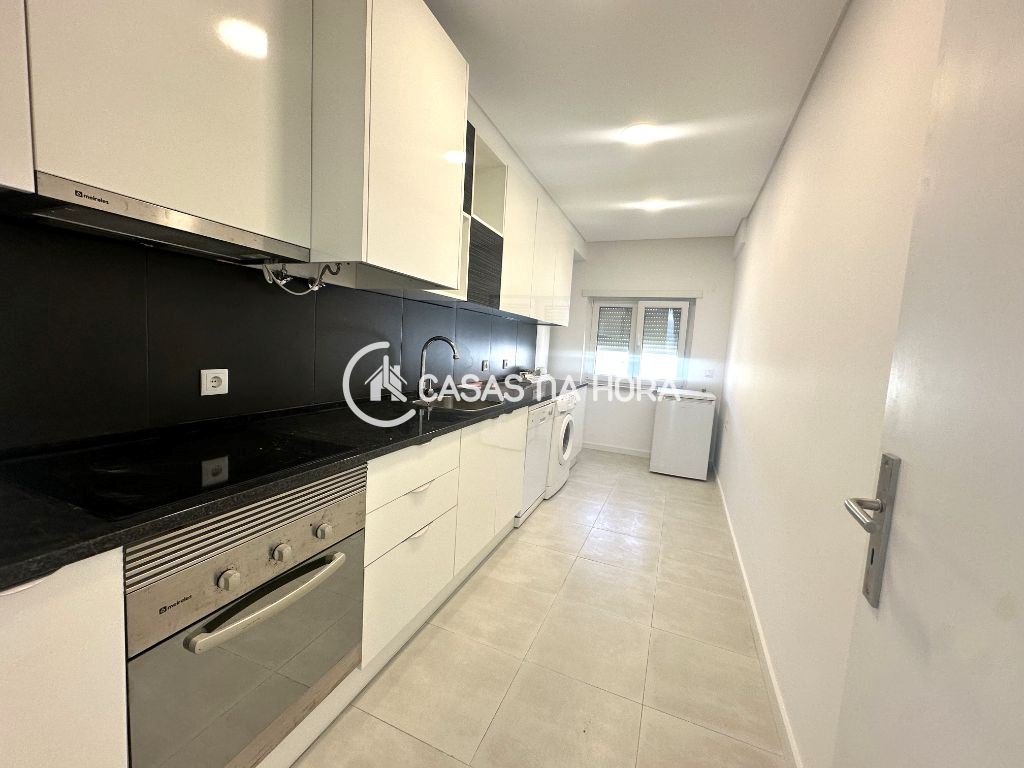 Cozinha com área de 10 m² equipada com placa vitrocerâmica, forno, exaustor, termoacumulador, máquina de lavar roupa, máquina de lavar loiça, oferecendo todas as comodidades essenciais.