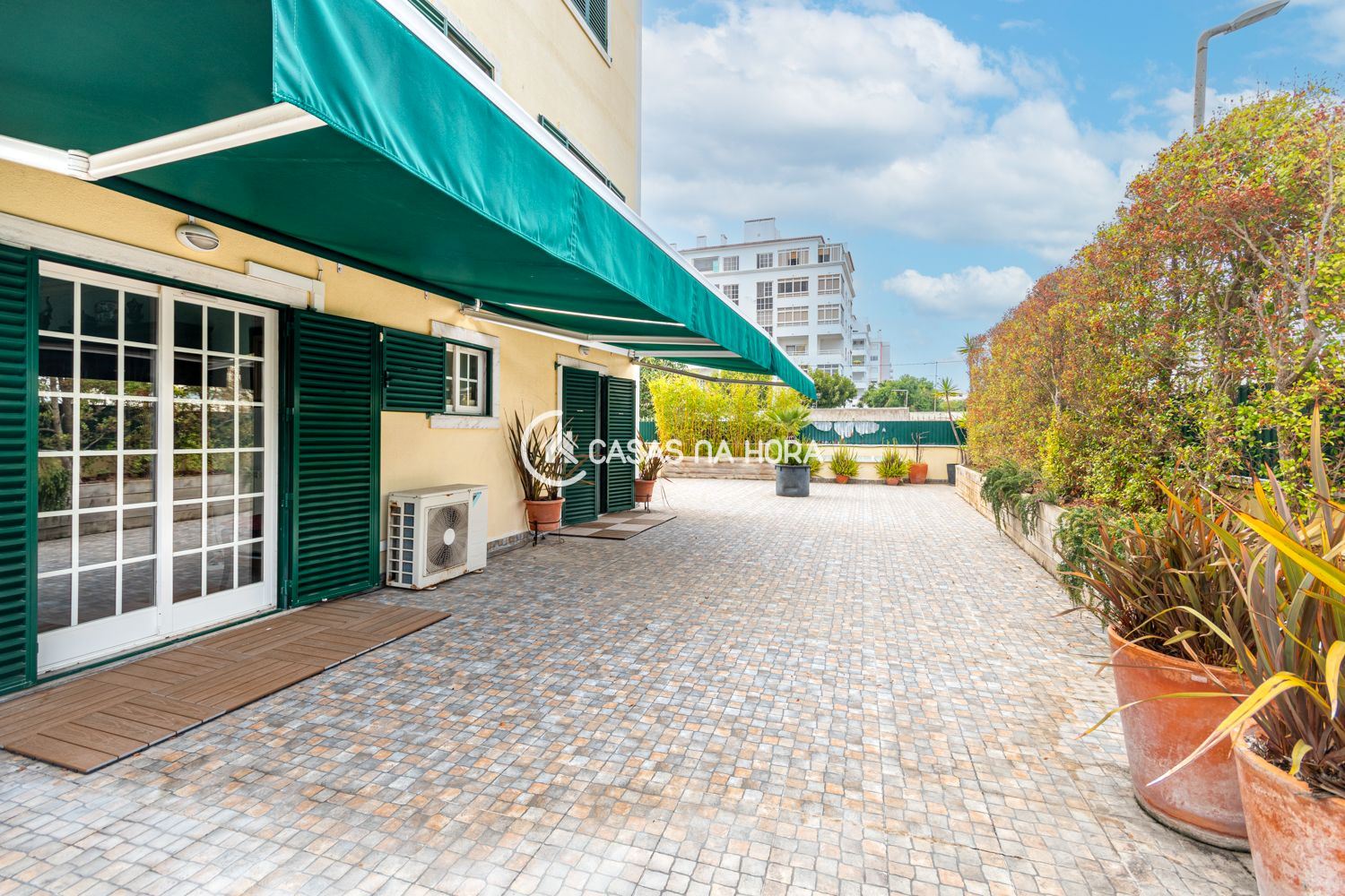 Sendo o rés-do-chão o apartamento possui um terraço de tamanho invulgar que contorna todo o apartamento, tendo todas as assoalhadas saída para o mesmo.
