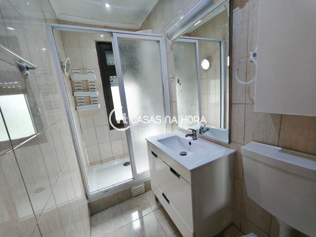 Casa de banho completa: 3,34m2 – C/ Móvel de Lavatório, Espelho; Poliban a c/ Proteção em Vidro e Coluna de Hidromassagem; Janela;