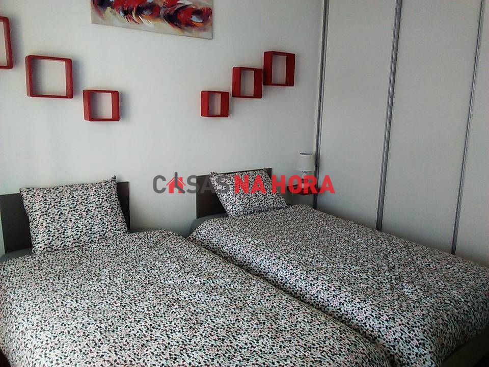Apartamento com 83m2 de área, uma kitchenette totalmente equipada, uma varanda com 3m2 e o apartamento totalmente mobilado. Os quartos de boas dimensões com roupeiros embutidos e a instalação sanitária com poliban. Possui ainda estores elétricos e caixilharia de alumínio com vidros duplos.