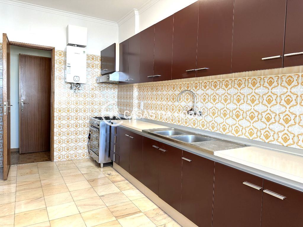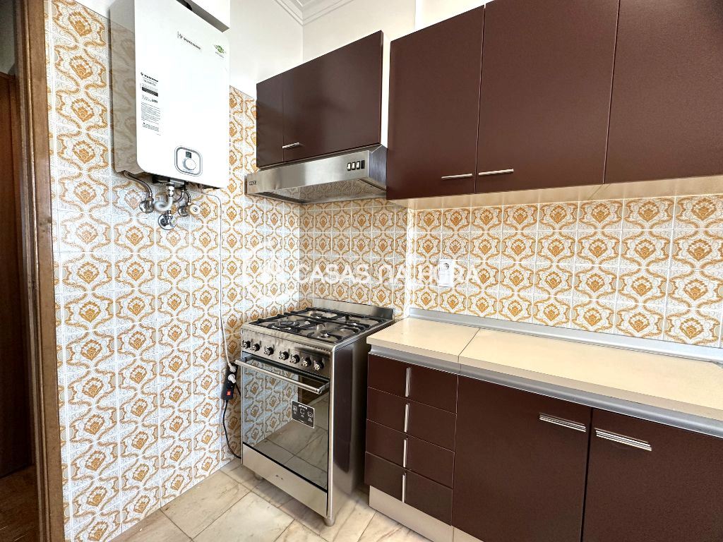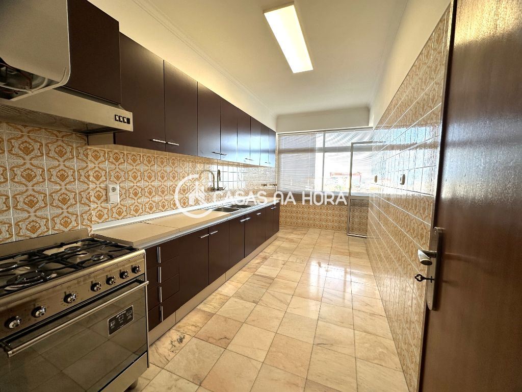 Cozinha ampla equipada com placa a gás, forno, exaustor e esquentador. com acesso à marquise