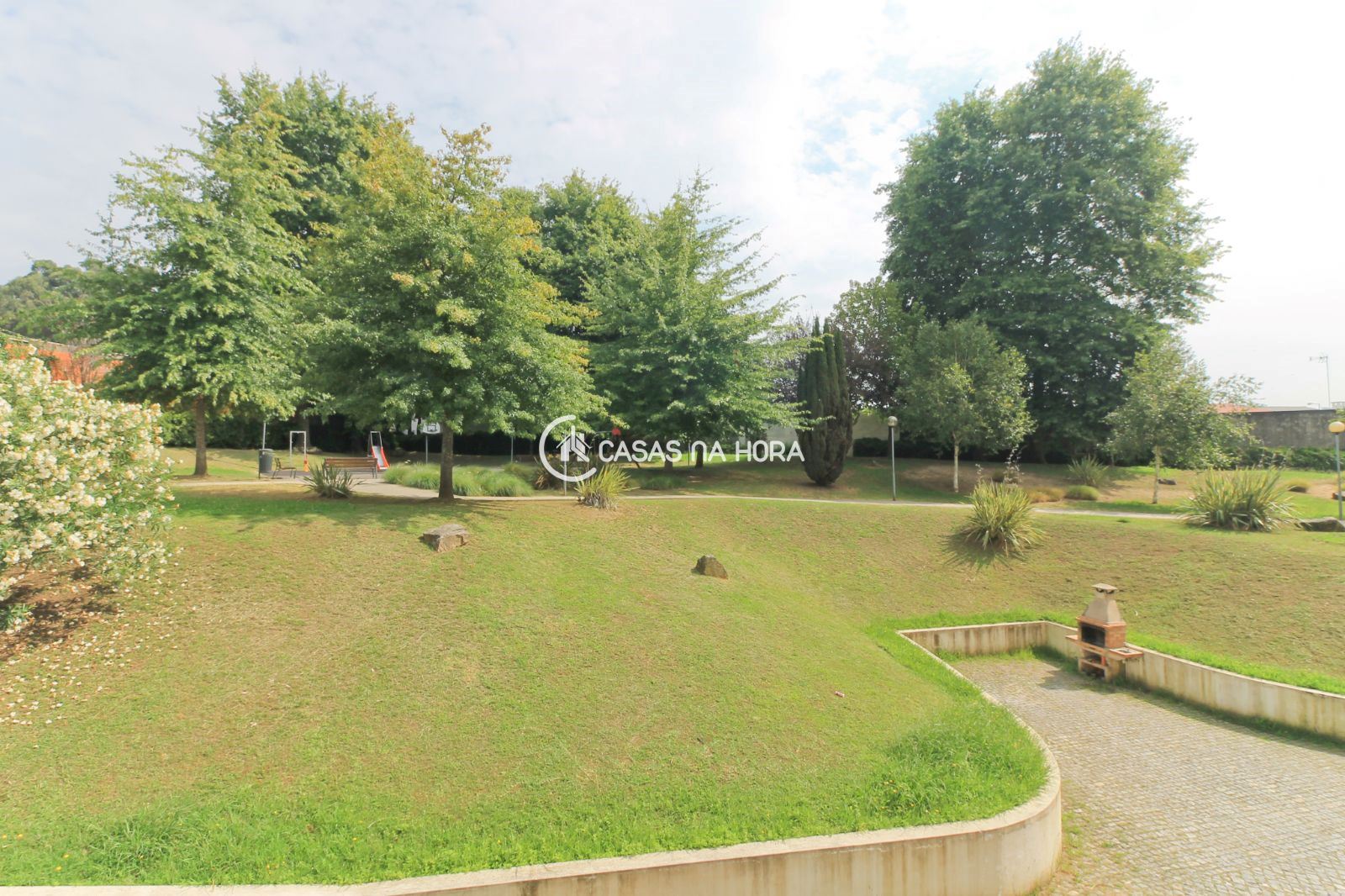 -jardim nas traseiras do edifício muito bem tratado, com parque infantil, barbecue comunitário, e zona tranquila praticamente de uso dos moradores da zona;