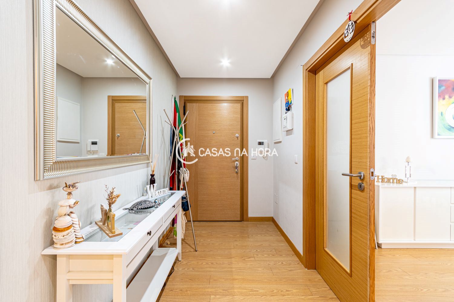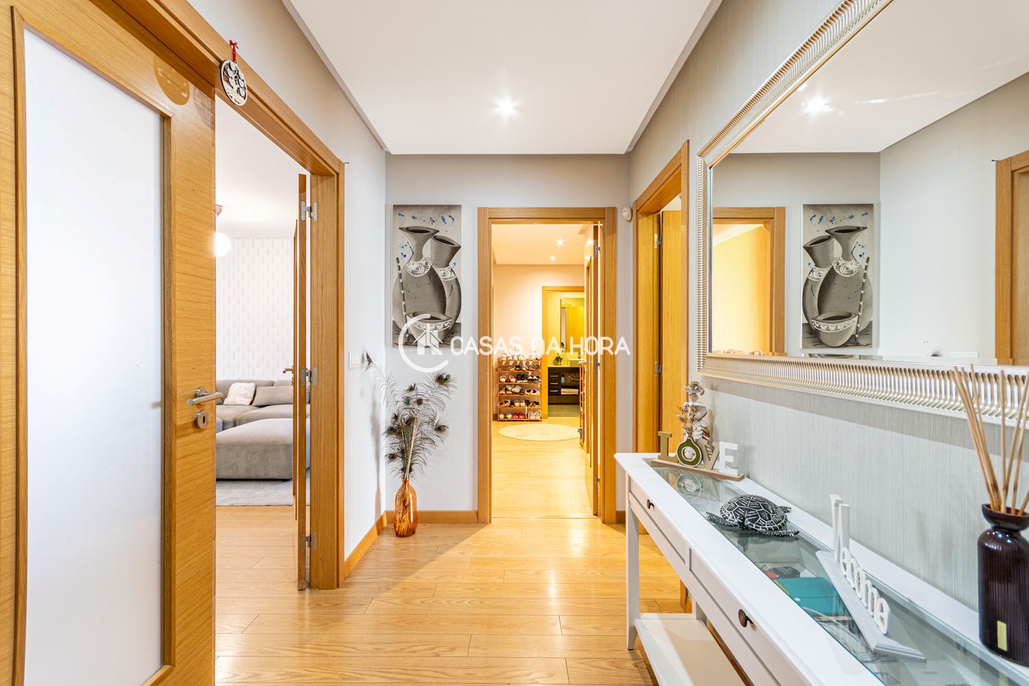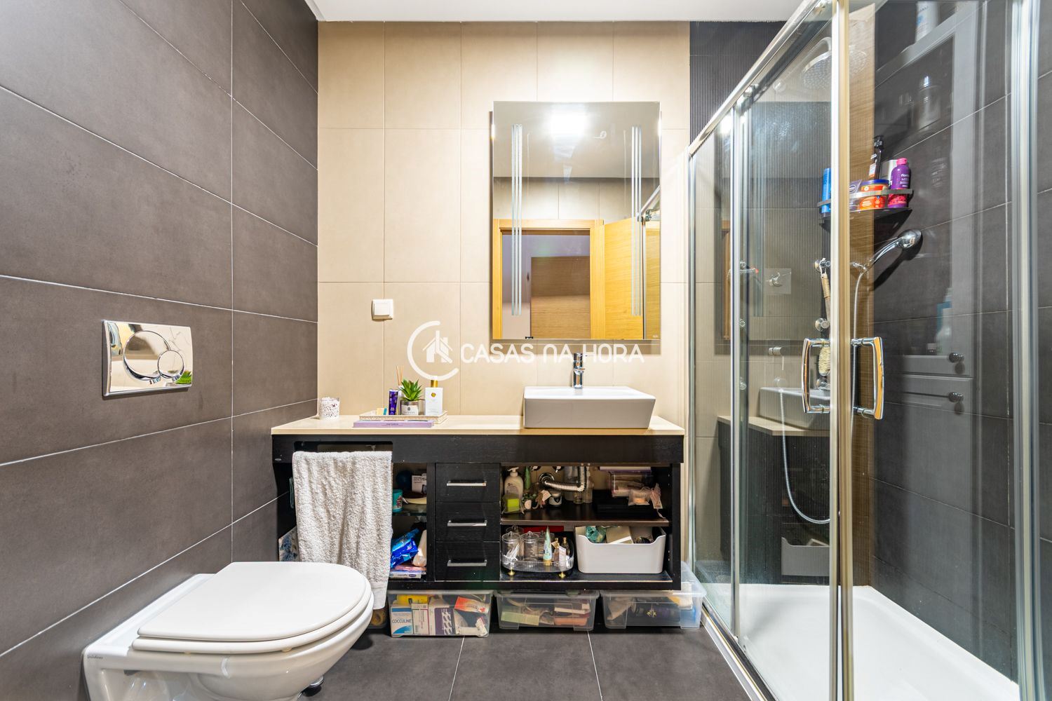 Suíte com 16 m², roupeiro embutido (3 portas), acesso ao terraço e luz natural. Casa de banho privativa com duche de hidromassagem e toalheiros aquecidos.