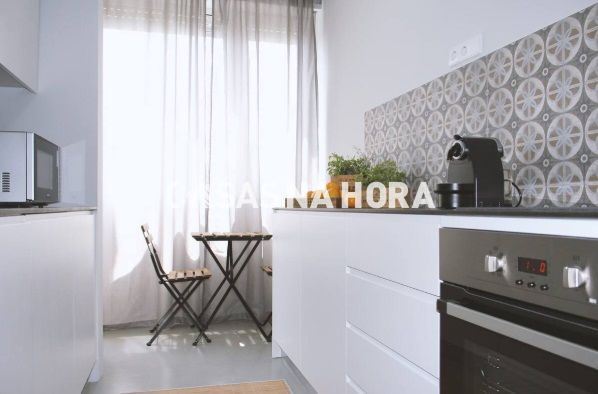 -cozinha equipada com frigorífico, placa e forno, exaustor;