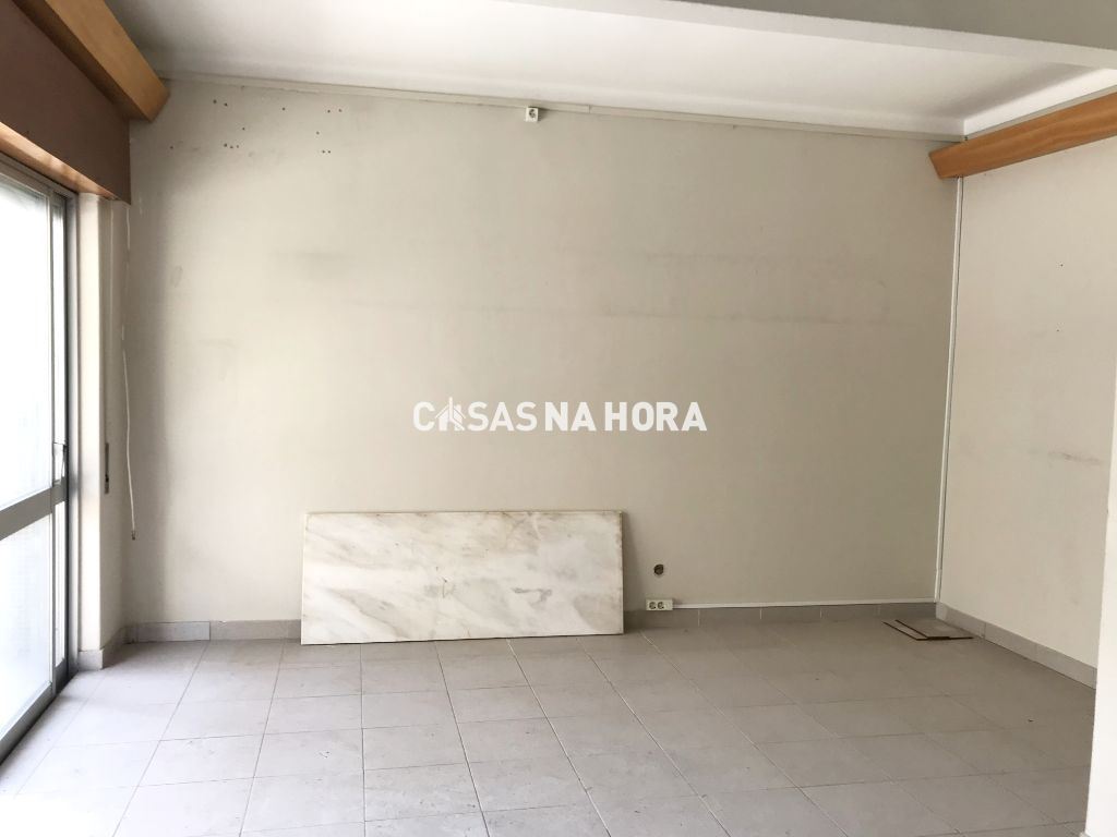 Este espaço comercial de 97 m2 está inserido num 1º andar de um prédio de 3 pisos e usufrui de duas casas de banho, uma varanda e um terraço comum.