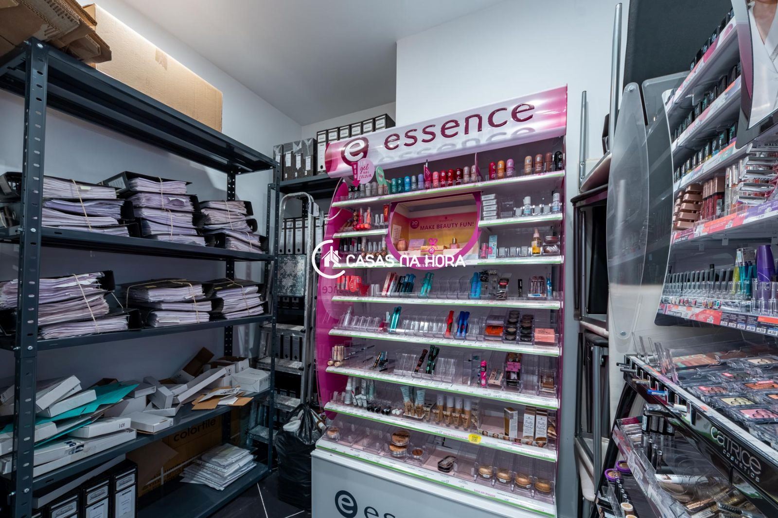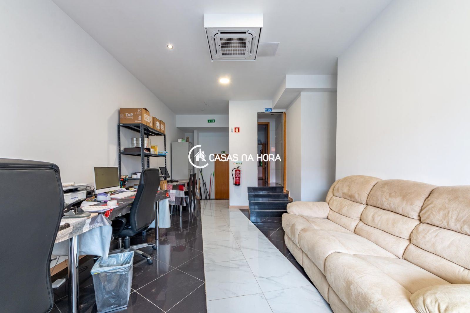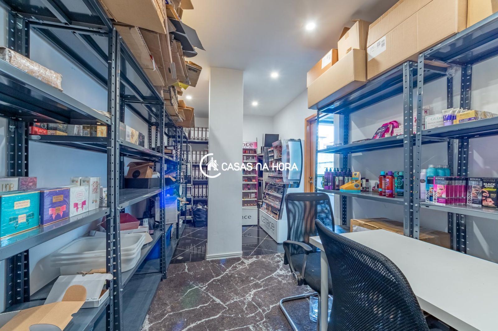 O escritório está equipado com ar condicionado para garantir o seu conforto durante o trabalho e uma casa de banho para maior comodidade. Os arrumos tem uma área ampla para acomodar todos os seus produtos.