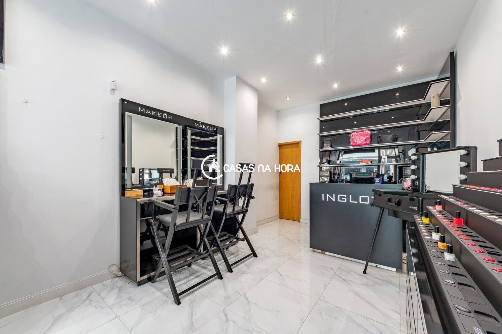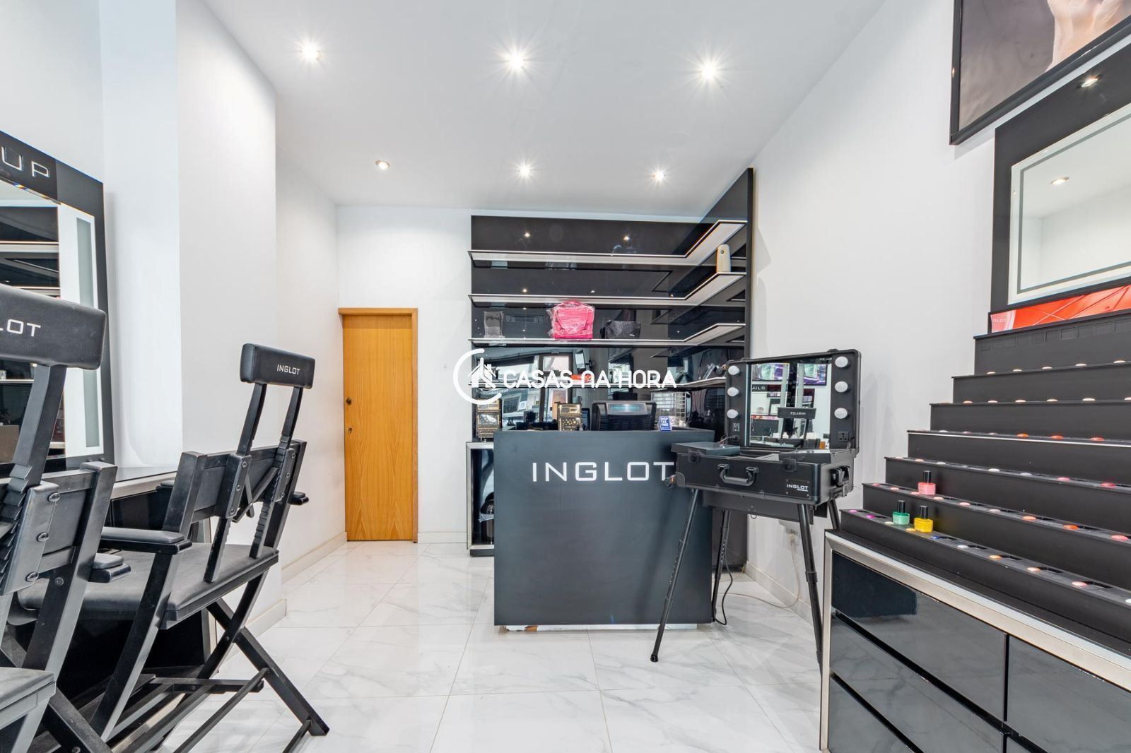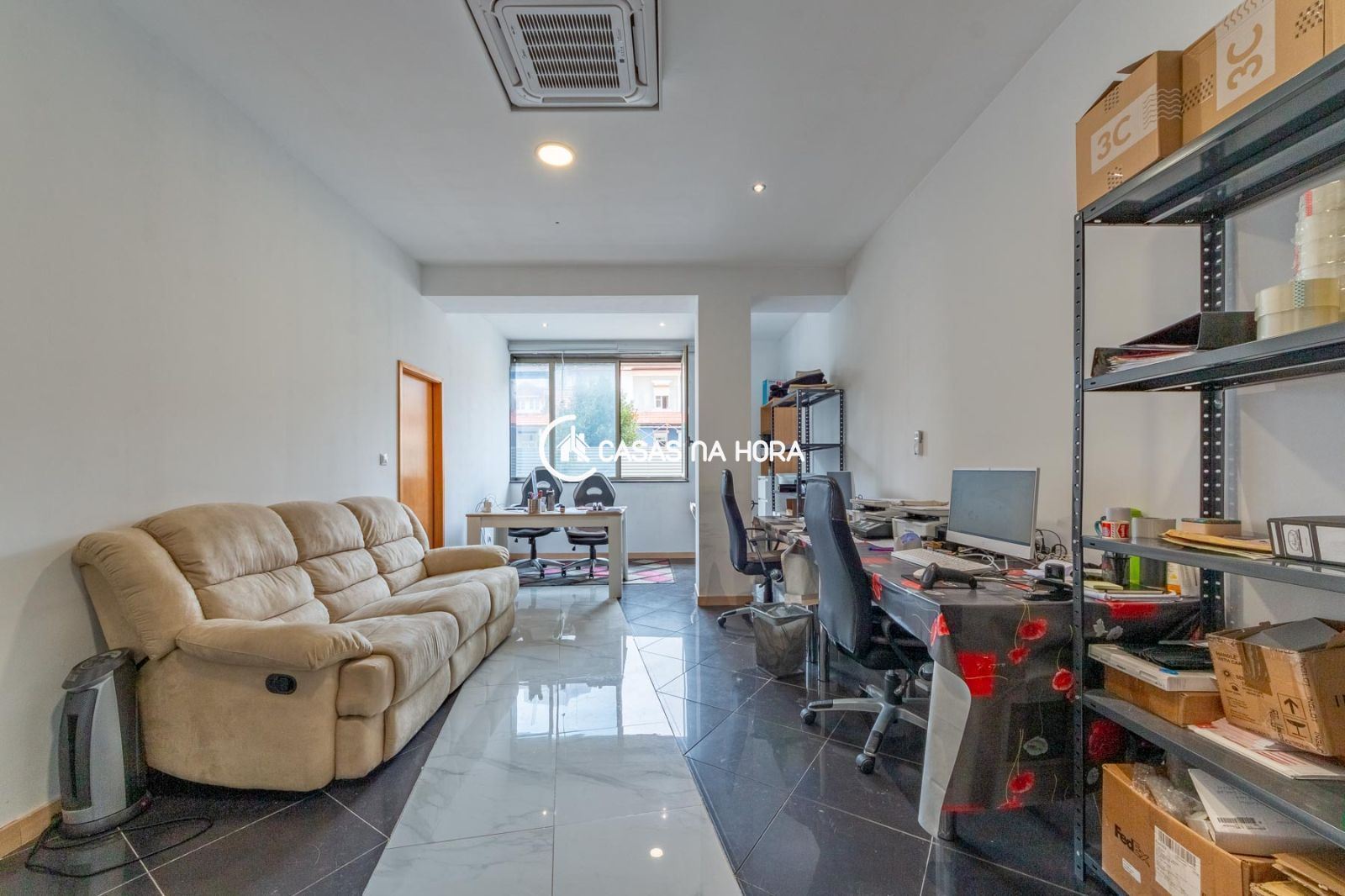 O escritório está equipado com ar condicionado para garantir o seu conforto durante o trabalho e uma casa de banho para maior comodidade. Os arrumos tem uma área ampla para acomodar todos os seus produtos.