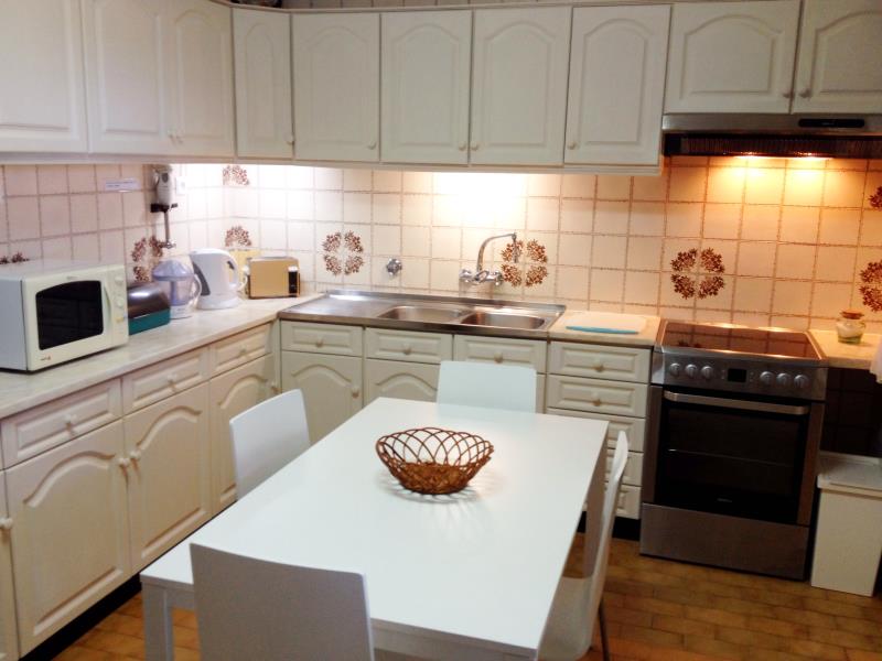 A cozinha está totalmente equipada com fogão, forno, microondas, máquina de lavar roupa, máquina de lavar loiça, chaleira, torradeira e máquina de café de cápsulas.