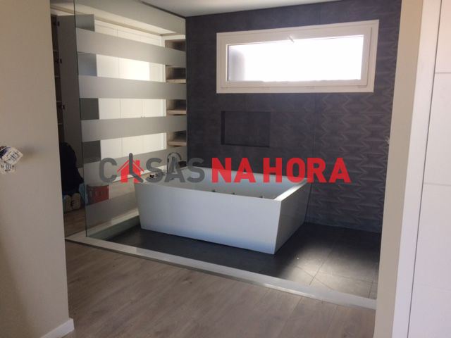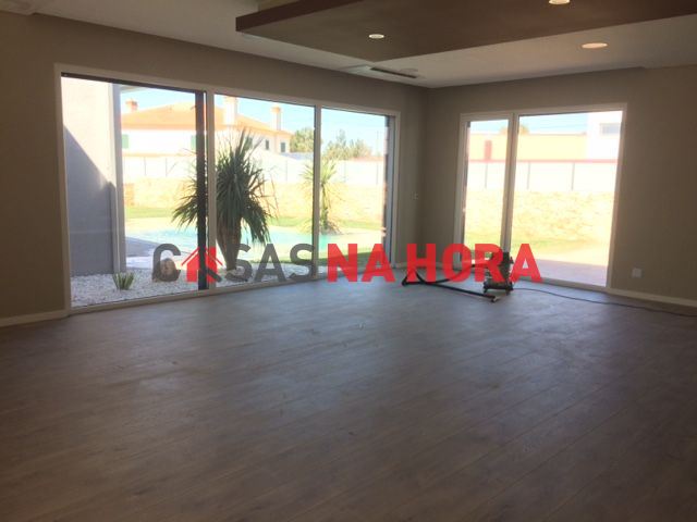 Sala comum com 50 m2 com lareira de recuperador de calor com pavimento flutuante, Cozinha com 25 m2 Totalmente equipada com ilha e moveis de alto brilho, lacados a branco, casa de banho social com 7 m2, Master Suite de 32 m2 com Closet e W.c. de 6 m2, Suite de 17 m2, Suite de 17 m2 ( partilha de w.c. 7 m2 ), Quarto com 15 m2 e hall de entrada com 10 m2.