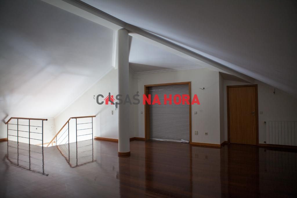 Sótão: sala ampla, arrumos, w.c. e varanda.