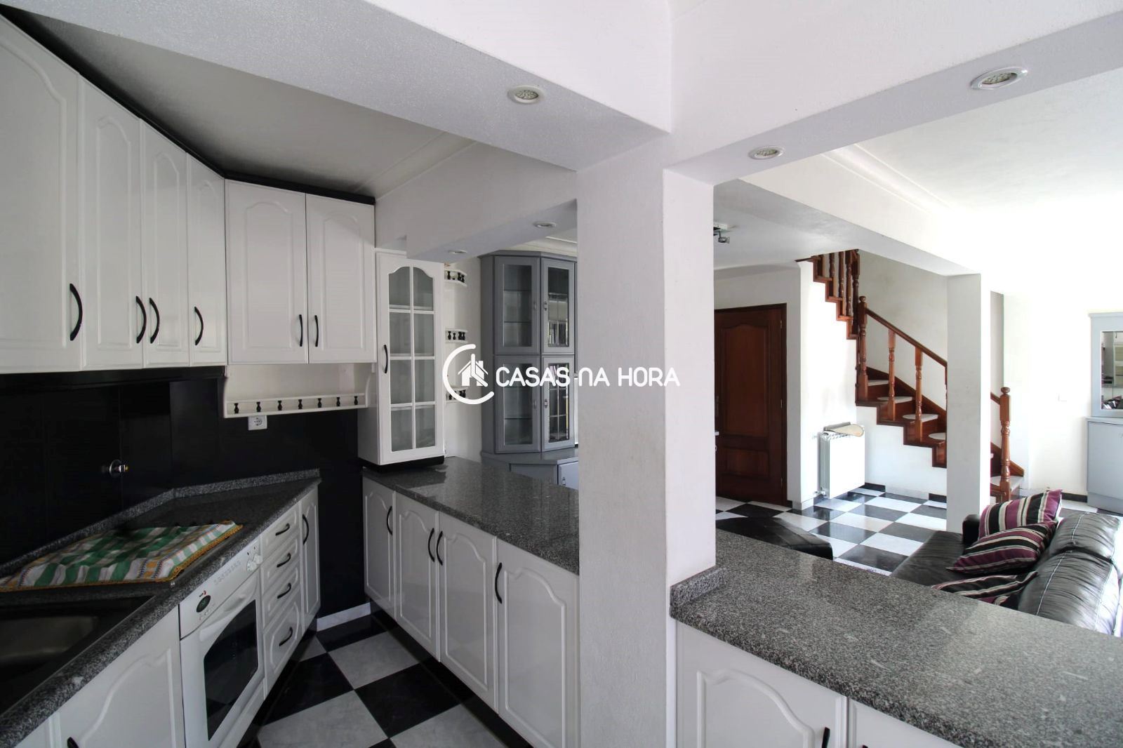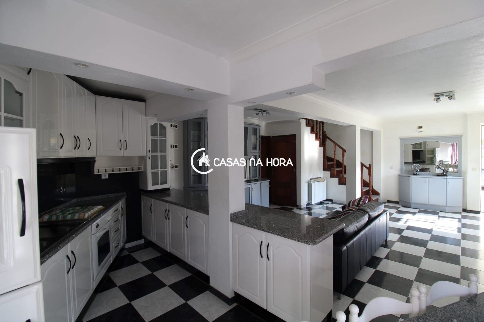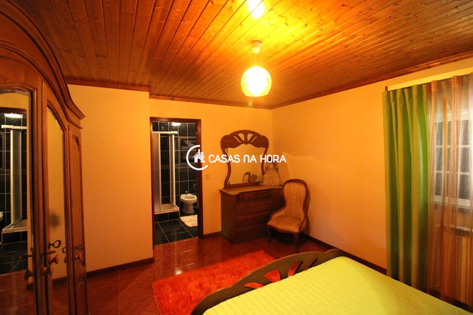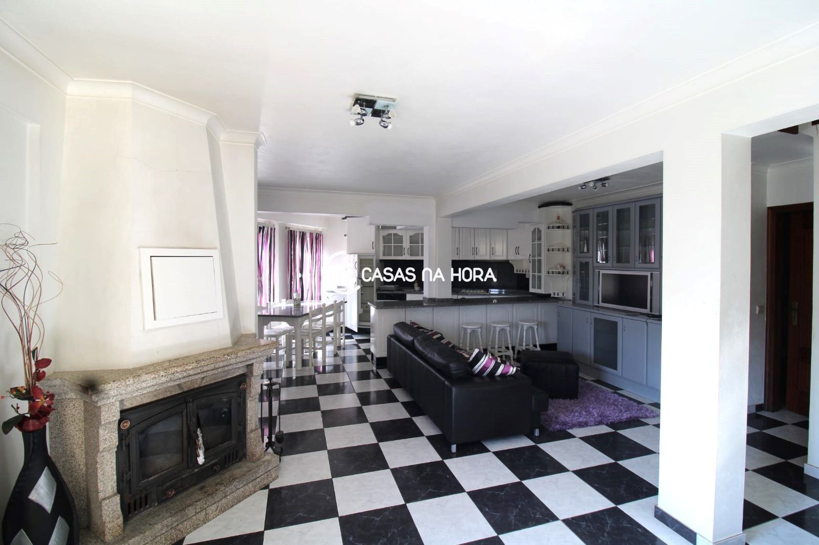 cozinha / sala com lareira, sala de estar com lareira, 4 quartos e 4 WC.