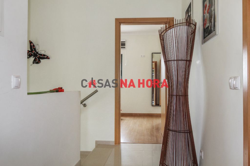 Na zona do primeiro andar temos três amplos quartos, dois deles partilham uma casa de banho e o quarto principal possui uma casa de banho privativa com . A garagem tem espaço para 4 carros.