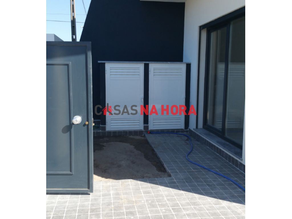 Moradia geminada T3 de 3 pisos. 3 quartos (1 suite), 2 casas de banho sociais, sala com recuperador de calor, cozinha toda equipada, zona de arrumos, logradouro, churrasqueira e estacionamento privado.
