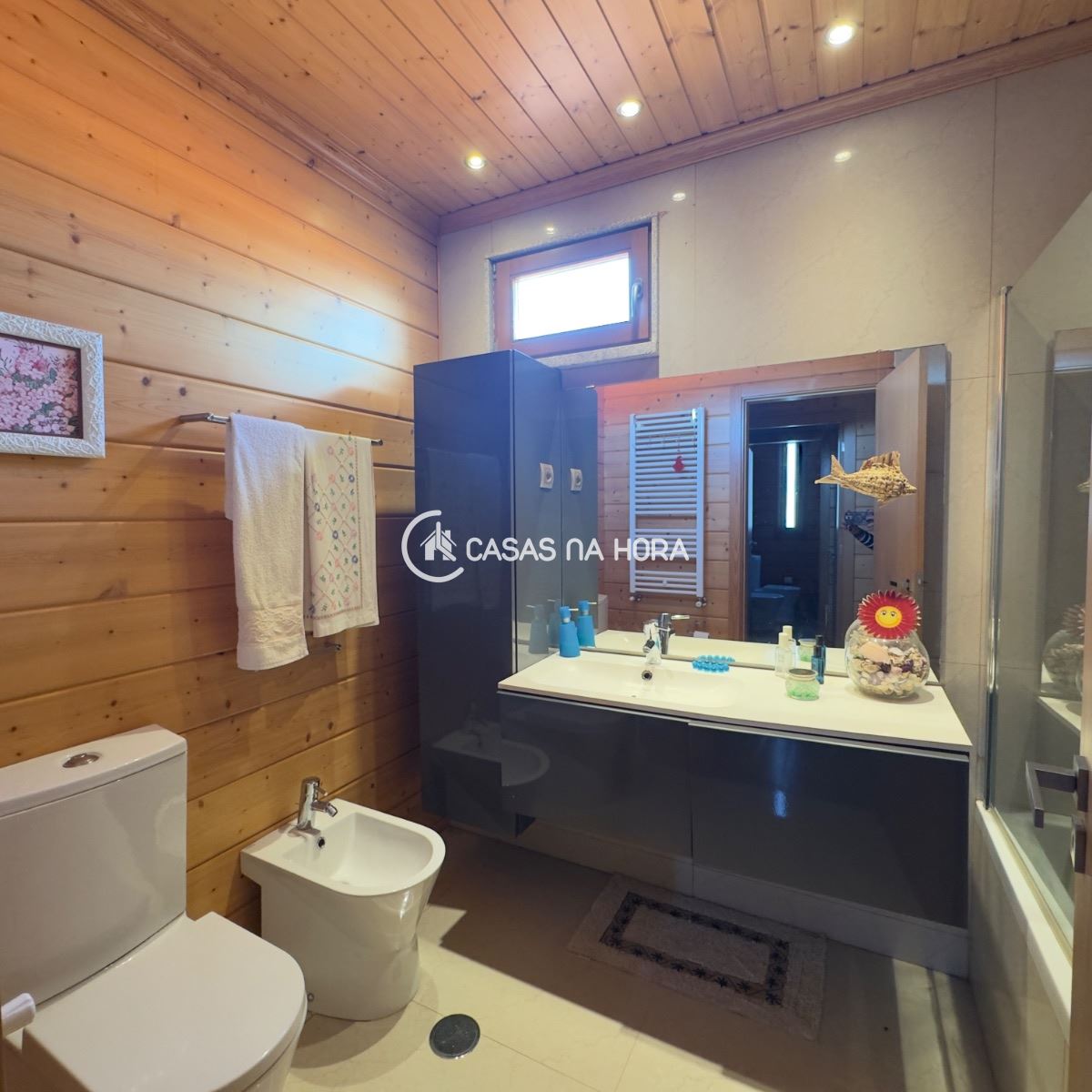 Cozinha equipada, aquecimento central, base de duche com hidromassagem, pré instalação de alarme e portão elétrico. Água do poço e água camarária.