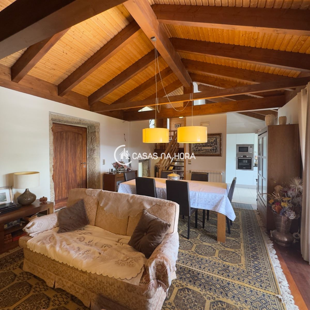 O exterior desta moradia é verdadeiramente encantador com um jardim, árvores, poço, logradouro, espigueiro e várias áreas de lazer. A orientação solar privilegiada garante a entrada de luz natural em todas as divisões, proporcionando um ambiente acolhedor.