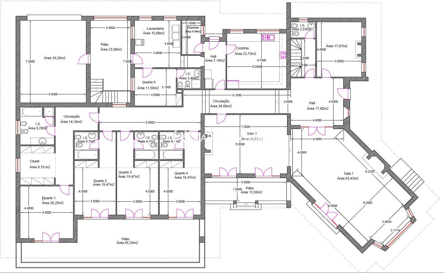 -7 casas de banho (2 são de serviço, e 5 são suítes);