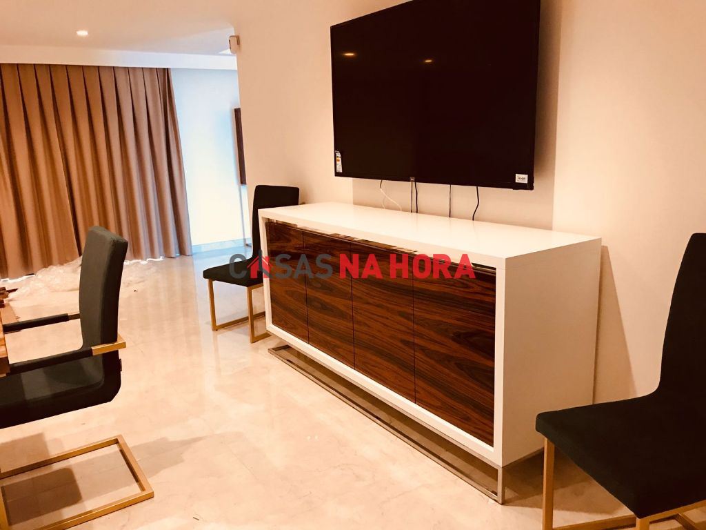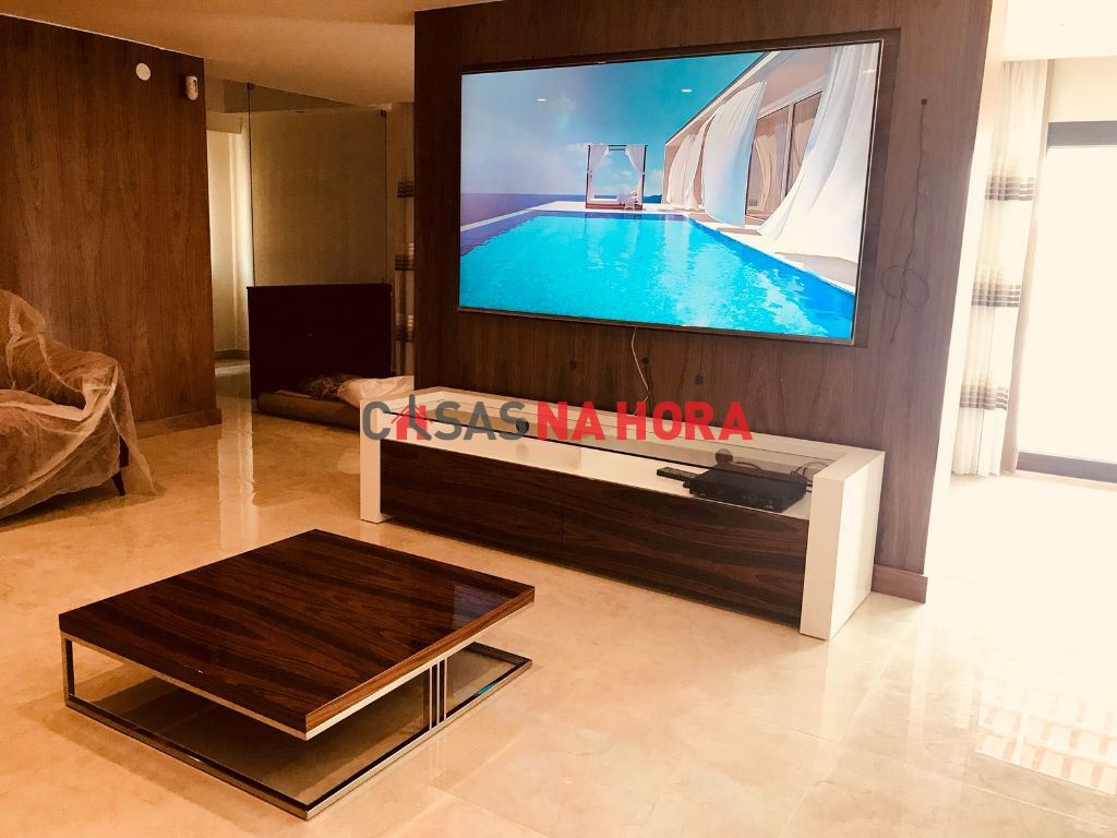 Decorado com cortinados, sala de jantar e sala de estar, TV de 84” com som Bose;